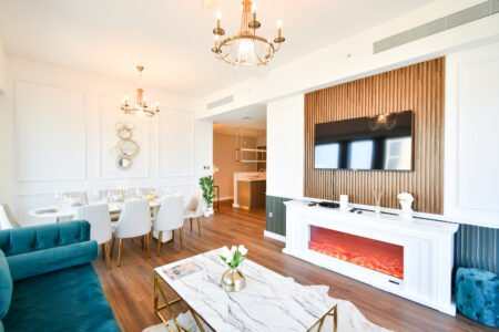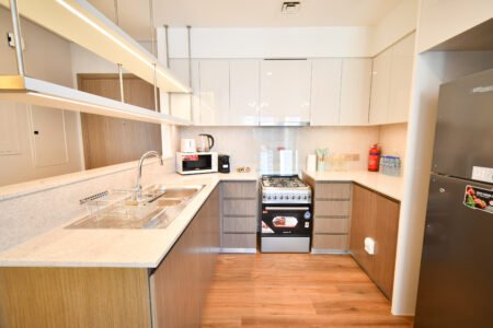 Our apartment is spacious, stylish, and bright, providing a warm and inviting atmosphere for your stay. Our fully-equipped modern kitchen is perfect for preparing a gourmet meal, with top-of-the-line appliances and cookware.